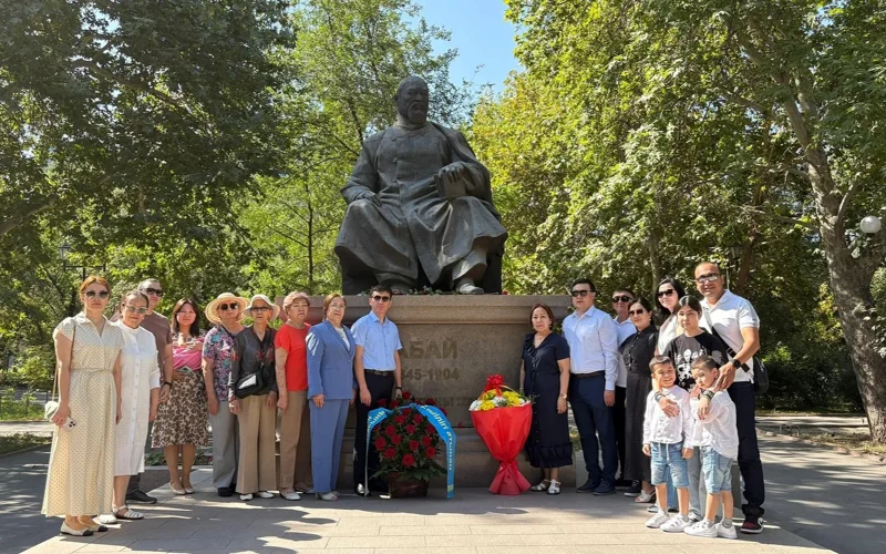 Қырғызстан астанасы Бішкекте Абайдың 180 жылдығына орай Театр скверіндегі ақын ескерткішіне гүл шоғын қою рәсімі өтті.