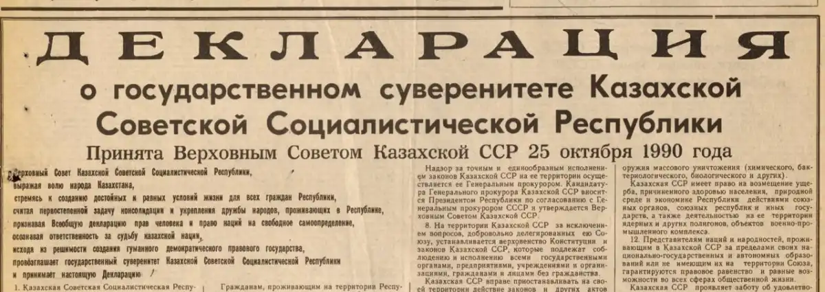 1990 жылдың 25 қазаны — Қазақстан тарихындағы тағдырлы белес. Сол күні Қазақ Кеңестік Социалистік Республикасының Жоғарғы Кеңесі Мемлекеттік егемендік туралы Декларацияны қабылдады. Бұл құжат елдің саяси, экономикалық, құқықтық дербестігін айқындаған алғашқы ресми акт еді.