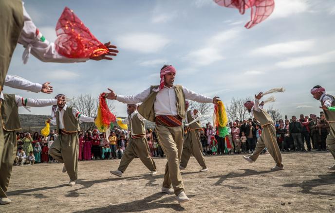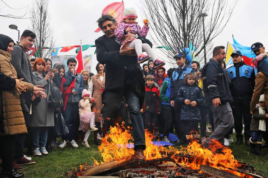 Солтүстік-шығыста (Rojava аймақтары) от жағу, шерулер, ұлттық киімдермен мерекелеу.
