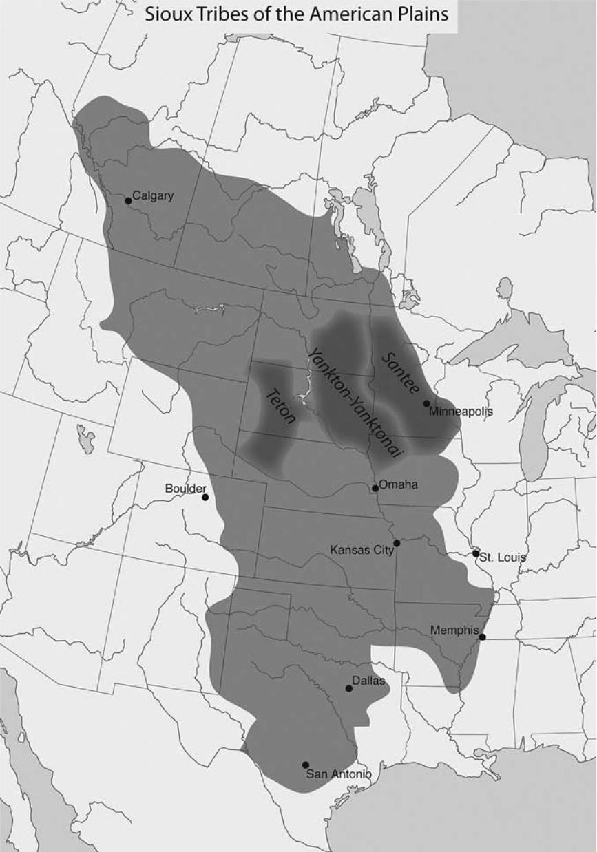 Сиу были кочевыми охотниками, чьи социальные, экономические, политические и культурные структуры находились в процессе изменений в XVIII веке, по мере того как различные группы переселялись на запад - от озер и лесных массивов Миннесоты и Висконсина к северным равнинам. Их язык относится к сиуанской языковой семье, включающей четырнадцать «взаимно непонятных языков». Для данного исследования важно рассматривать лишь часть этого более широкого семейства, различаемую по трем диалектам, но объединяемую в две группы - дакота и лакота. Санти и янктон/янктонай называли себя дакота, а тетоны использовали вариант лакота. Название «сиу», французское и английское обозначение лакота и дакота, не является самоназванием, а представляет собой транслитерацию слова из языка оджибве (чиппева) - natowessiwak, которое французы сократили до Sioux. Ученые до сих пор спорят о его значении. Чаще всего его переводят как «змея» или «враг». Однако гораздо важнее было то, как они называли себя сами - дакота или лакота, что, по словам американского миссионера XIX века Стивена Р. Риггса, означало «объединенные» или «союзные», но, возможно, подразумевало человека, состоящего в союзе или говорящего на одном языке, то есть друга.
