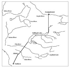 Граница казахской территории от Семипалатинска до Ташкента по описаниям из цинских документов